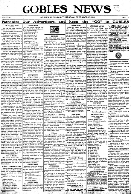 Gobles news. Vol. 42 no. 11 (1931 December 10)