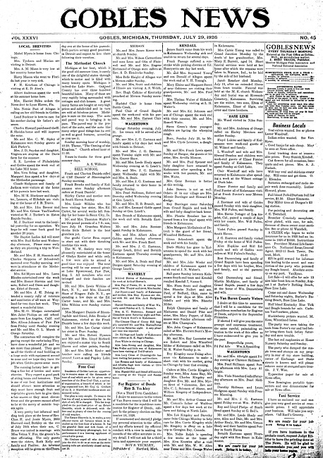 Gobles news. Vol. 36 no. 45 (1926 July 29)