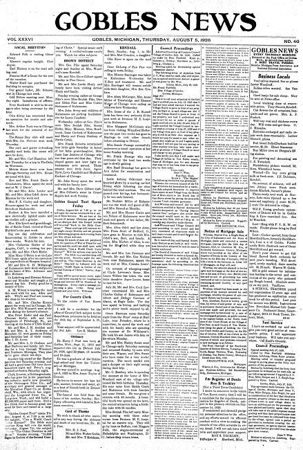 Gobles news. Vol. 36 no. 46 (1926 August 5)