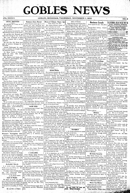 Gobles news. Vol. 37 no. 8 (1926 November 11)