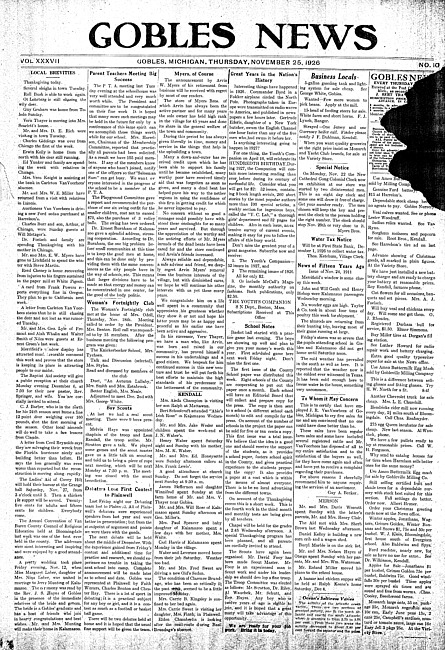 Gobles news. Vol. 37 no. 10 (1926 November 25)