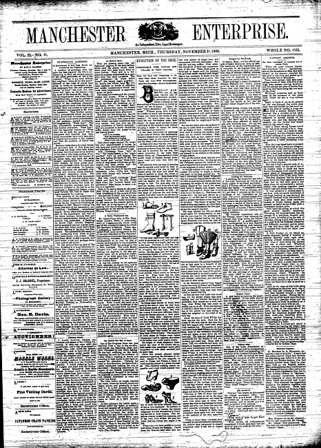 Text (1892)Part of Making of Modern MichiganManchester enterprise. Vol. 23 no. 11 (1889 November 21)