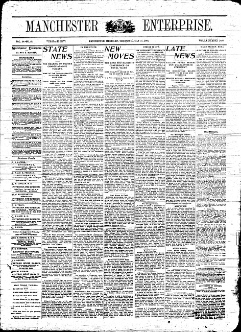 Text (1878)Part of Making of Modern MichiganManchester enterprise. Vol. 33 no. 12 (1899 November 23)