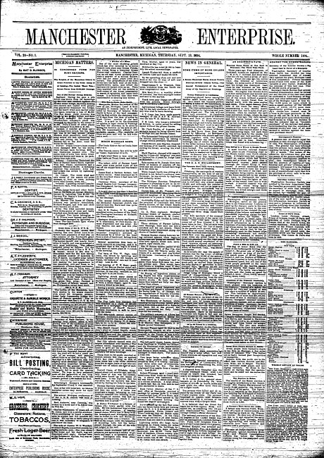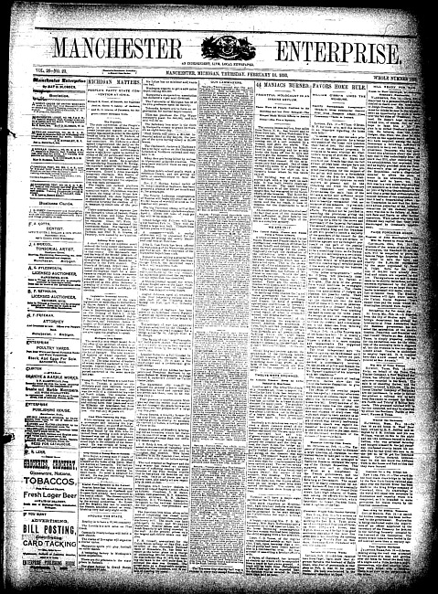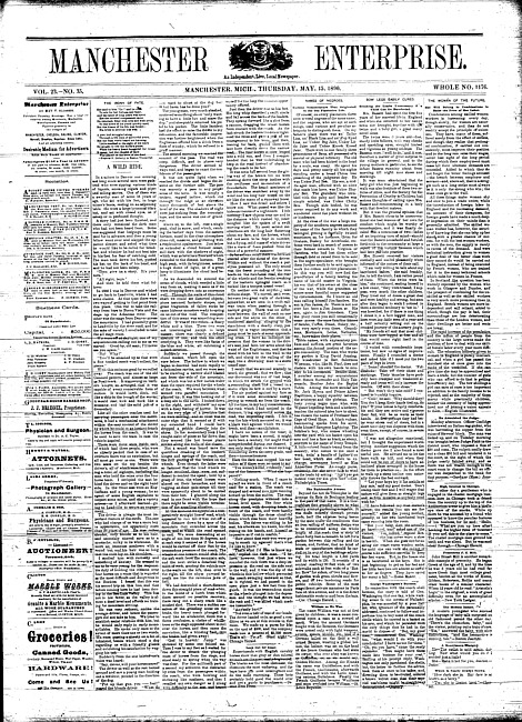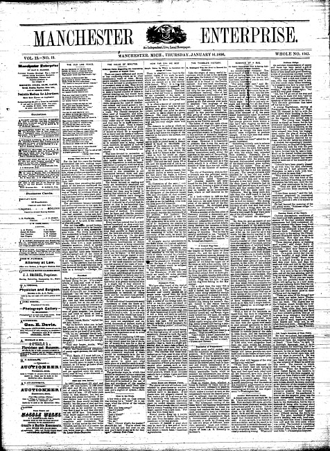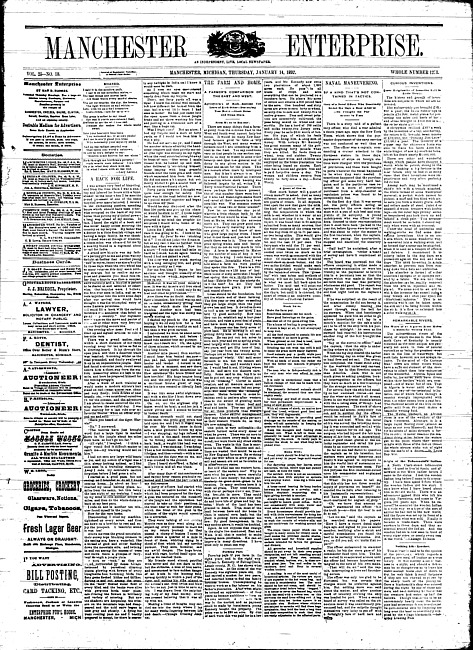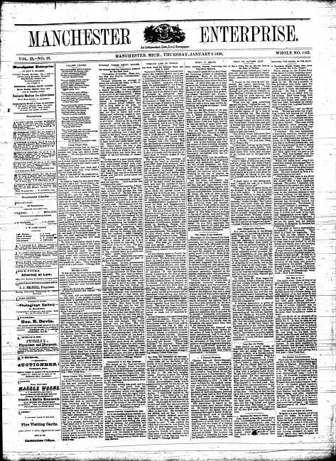Text (1893)Part of Making of Modern MichiganManchester enterprise. Vol. 23 no. 19 (1890 January 16)