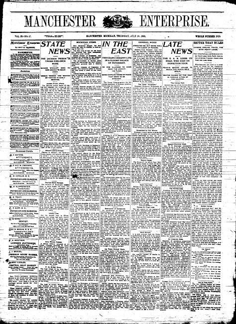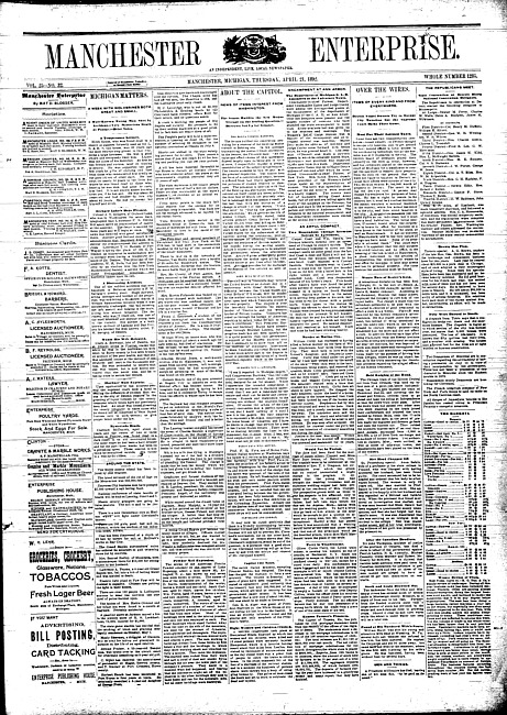 Text (1894)Part of Making of Modern MichiganManchester enterprise. Vol. 25 no. 18 (1892 January 14)