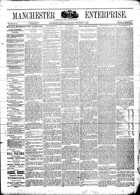 Text (1902)Part of Making of Modern MichiganManchester enterprise. Vol. 26 no. 52 (1893 September 7)