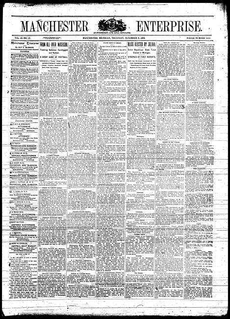 Text (1883)Part of Making of Modern MichiganManchester enterprise. Vol. 36 no. 10 (1902 November 6)