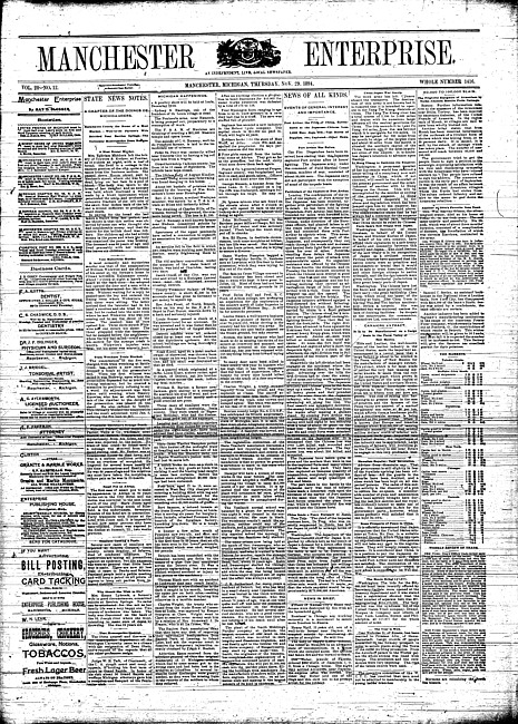 Text (1879)Part of Making of Modern MichiganManchester enterprise. Vol. 28 no. 12 (1894 November 29)