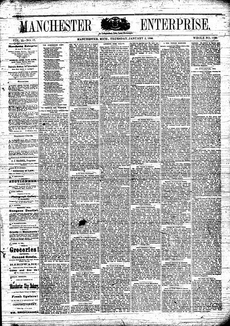 Text (1889)Part of Making of Modern MichiganManchester enterprise. Vol. 8 no. 10 (1874 December 3)