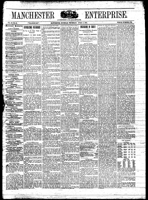 Text (1876)Part of Making of Modern MichiganManchester enterprise. Vol. 34 no. 22 (1901 January 31)