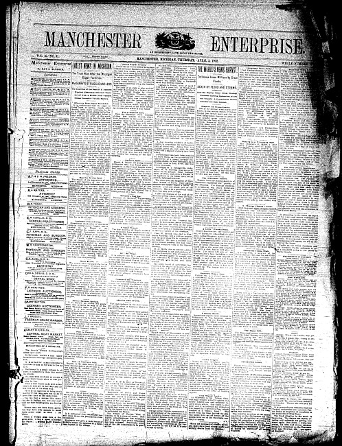 Text (1874)Part of Making of Modern MichiganManchester enterprise. Vol. 33 no. 23 (1900 February 8)