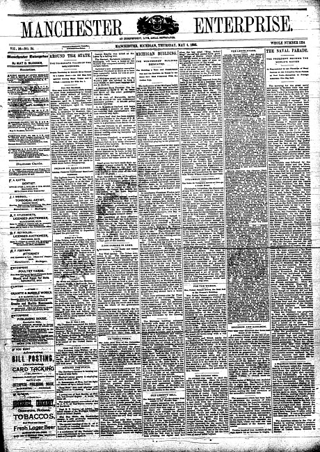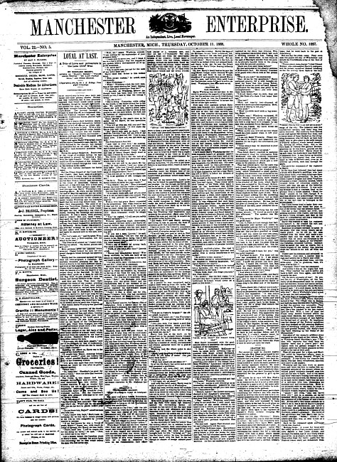 Text (1895)Part of Making of Modern MichiganManchester enterprise. Vol. 22 no. 5 (1888 October 11)