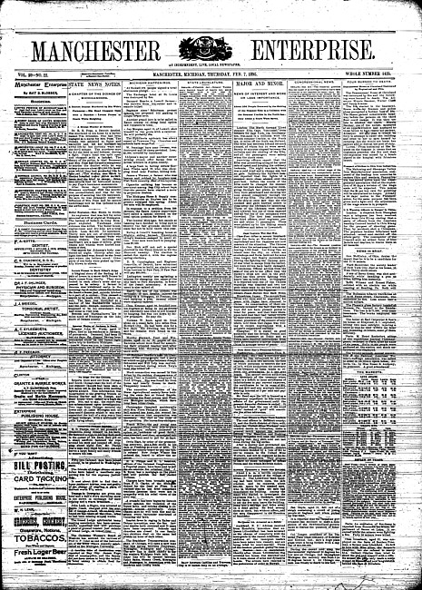 Text (1880)Part of Making of Modern MichiganManchester enterprise. Vol. 28 no. 22 (1895 February 7)