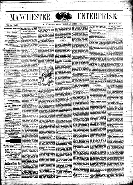 Text (1878)Part of Making of Modern MichiganManchester enterprise. Vol. 16 no. 6 (1882 October 26)