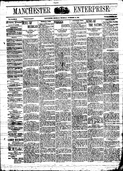 Text (1882)Part of Making of Modern MichiganManchester enterprise. Vol. 28 no. 8 (1894 November 1)