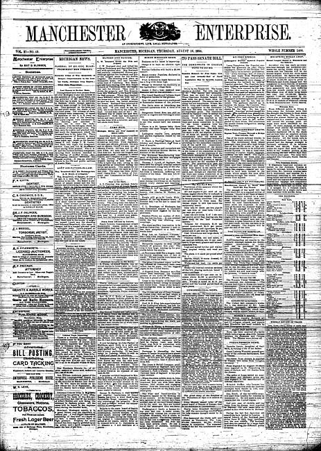 Text (1900)Part of Making of Modern MichiganManchester enterprise. Vol. 27 no. 49 (1894 August 16)
