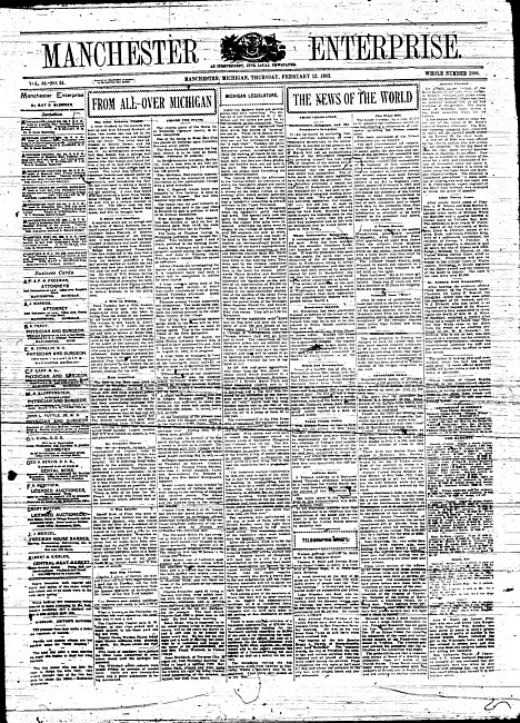 Text (1882)Part of Making of Modern MichiganManchester enterprise. Vol. 36 no. 24 (1903 February 12)