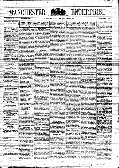 Text (1905)Part of Making of Modern MichiganManchester enterprise. Vol. 30 no. 1 (1896 September 10)