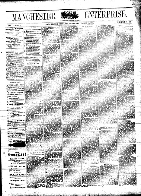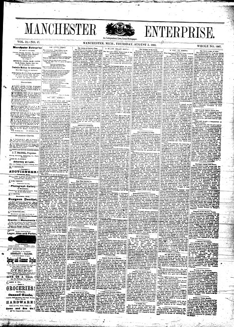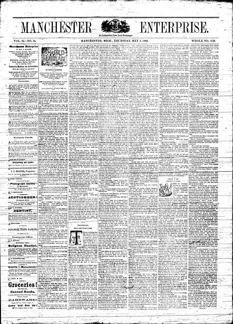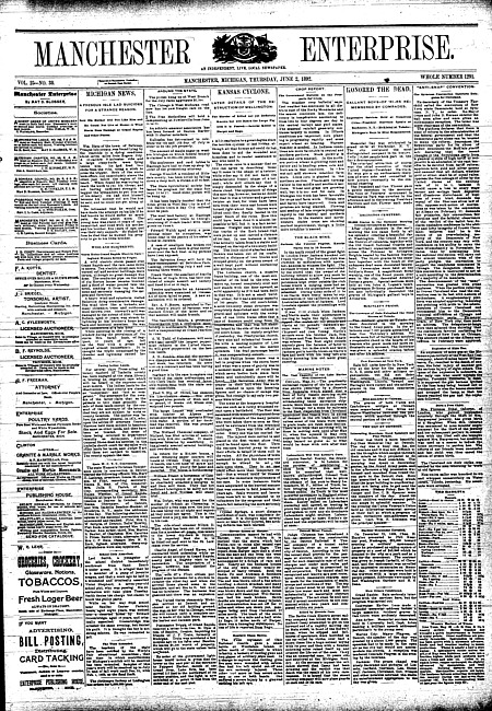 Text (1893)Part of Making of Modern MichiganManchester enterprise. Vol. 22 no. 2 (1888 September 20)