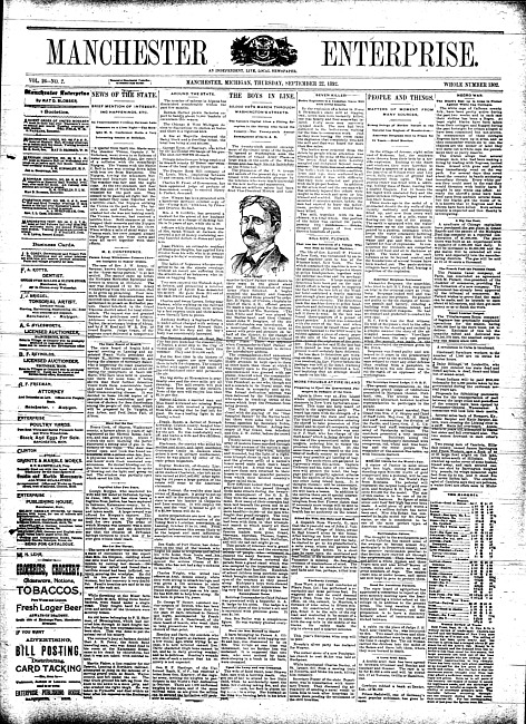 Text (1895)Part of Making of Modern MichiganManchester enterprise. Vol. 26 no. 2 (1892 September 22)