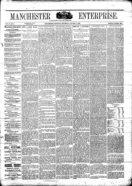 Text (1892)Part of Making of Modern MichiganManchester enterprise. Vol. 27 no. 8 (1893 November 2)