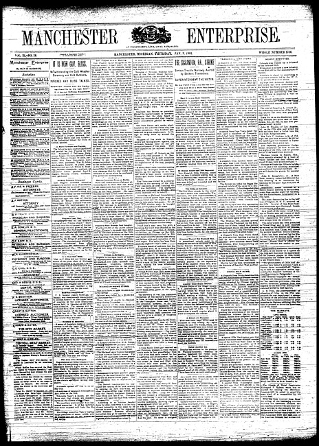 Text (1895)Part of Making of Modern MichiganManchester enterprise. Vol. 8 no. 16 (1875 January 14)