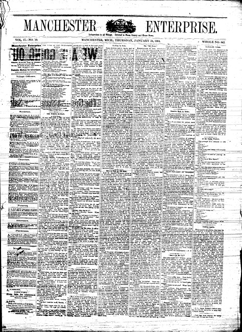 Text (1885)Part of Making of Modern MichiganManchester enterprise. Vol. 17 no. 19 (1884 January 24)