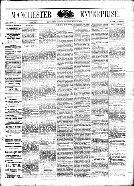 Text (1893)Part of Making of Modern MichiganManchester enterprise. Vol. 21 no. 52 (1888 September 6)