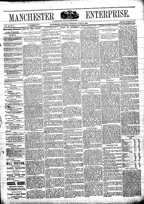 Text (1888)Part of Making of Modern MichiganManchester enterprise. Vol. 23 no. 50 (1890 August 21)