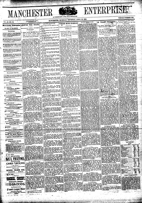Text (1899)Part of Making of Modern MichiganManchester enterprise. Vol. 30 no. 10 (1896 November 12)