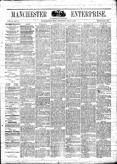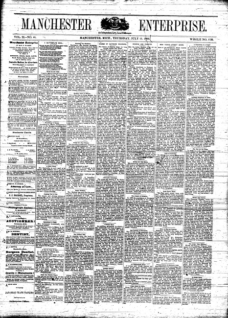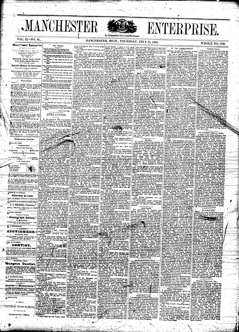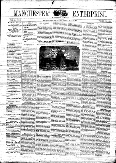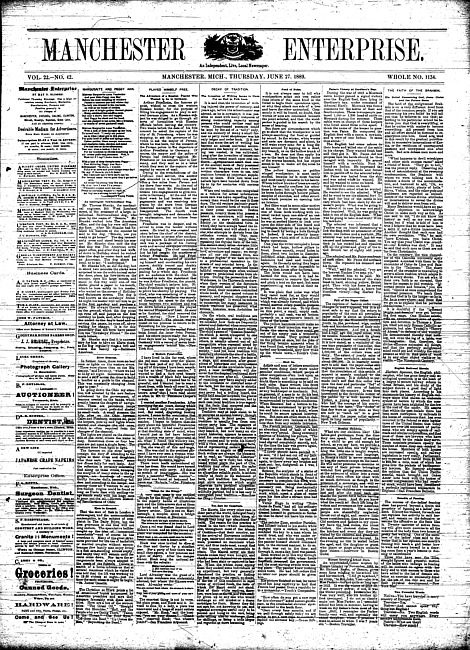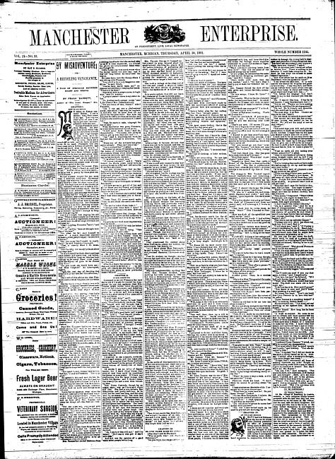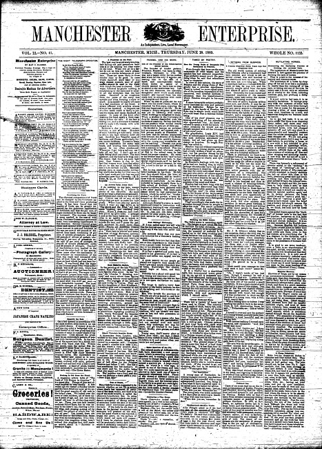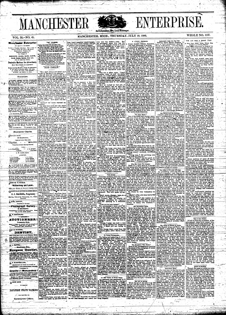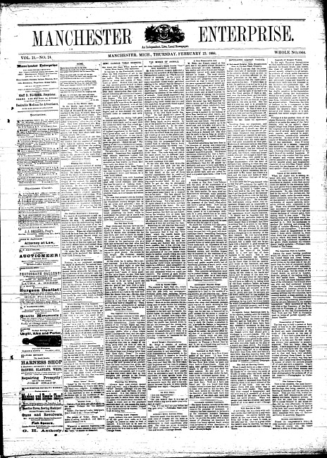 Text (1887)Part of Making of Modern MichiganManchester enterprise. Vol. 21 no. 22 (1888 February 9)