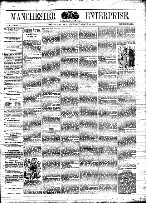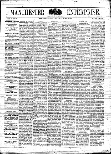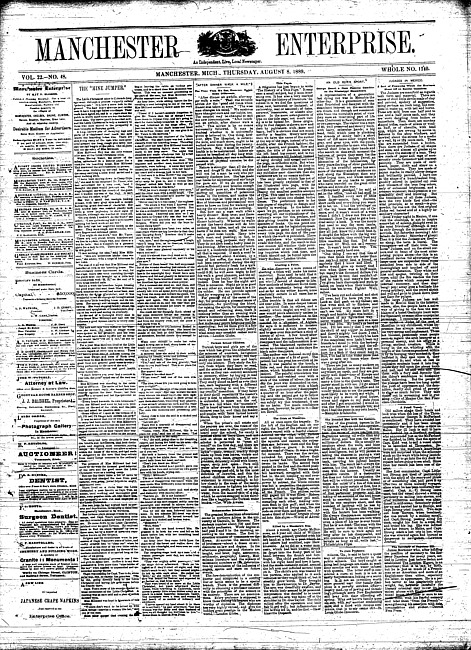 Text (1888)Part of Making of Modern MichiganManchester enterprise. Vol. 22 no. 49 (1889 August 15)