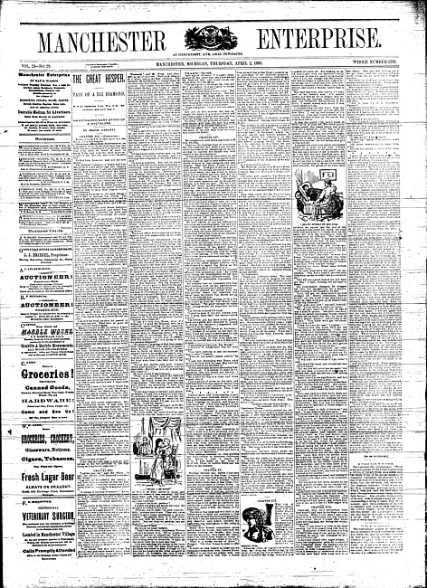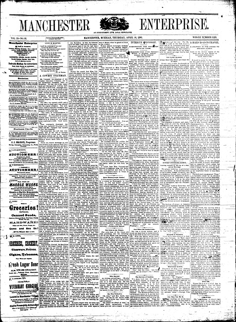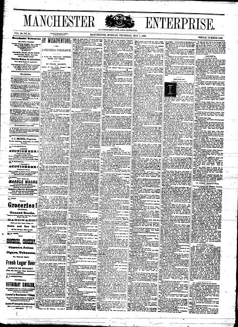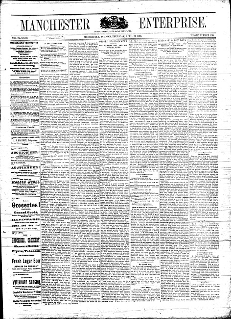 Text (1888)Part of Making of Modern MichiganManchester enterprise. Vol. 21 no. 14 (1887 December 15)