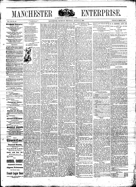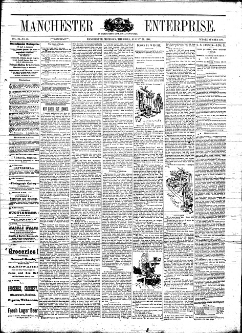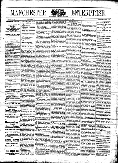 Text (1890)Part of Making of Modern MichiganManchester enterprise. Vol. 23 no. 50 (1890 August 21)