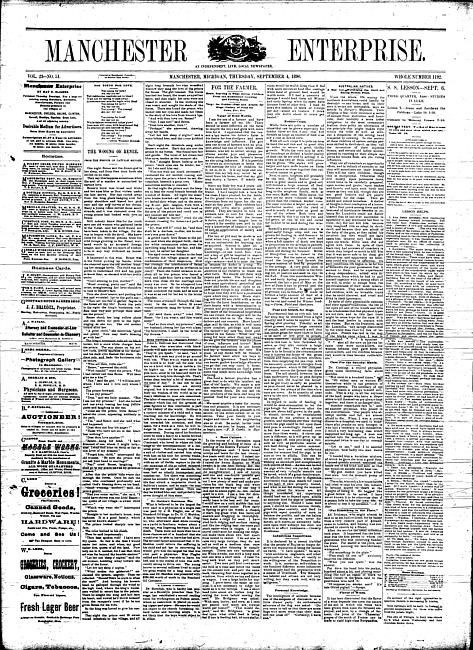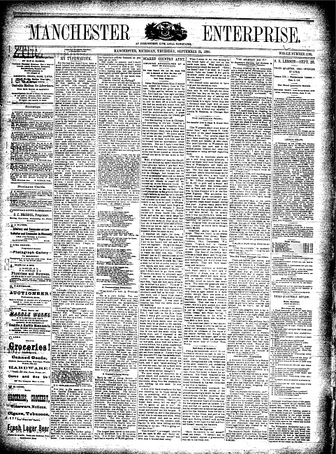 Text (1890)Part of Making of Modern MichiganManchester enterprise. Vol. 23 no. 52 (1890 September 4)