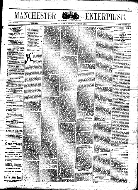 Text (1890)Part of Making of Modern MichiganManchester enterprise. Vol. 24 no. 1 (1890 September 18)