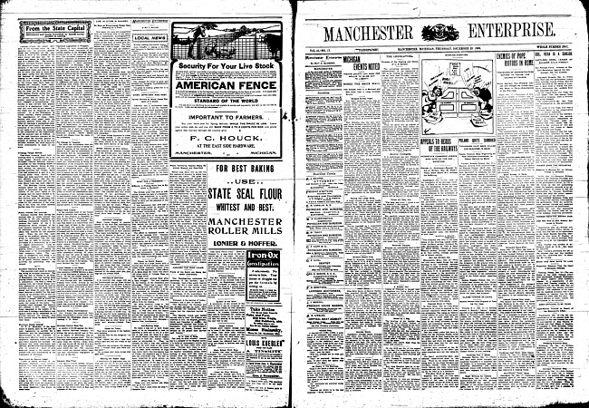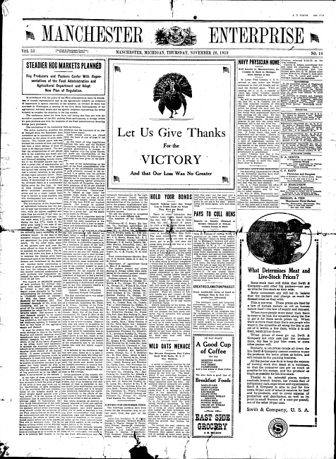 Text (1891)Part of Making of Modern MichiganManchester enterprise. Vol. 53 no. 16 (1918 November 28)