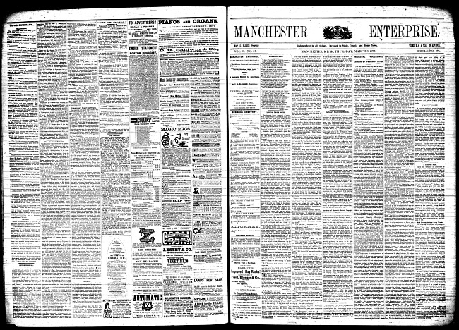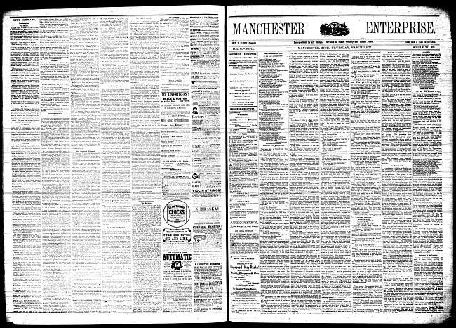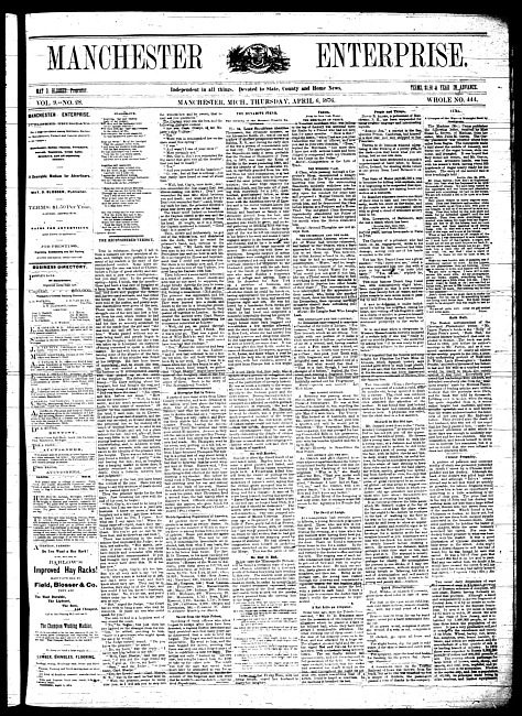 Text (1876)Part of Making of Modern MichiganManchester enterprise. Vol. 10 no. 20 (1877 February 8)