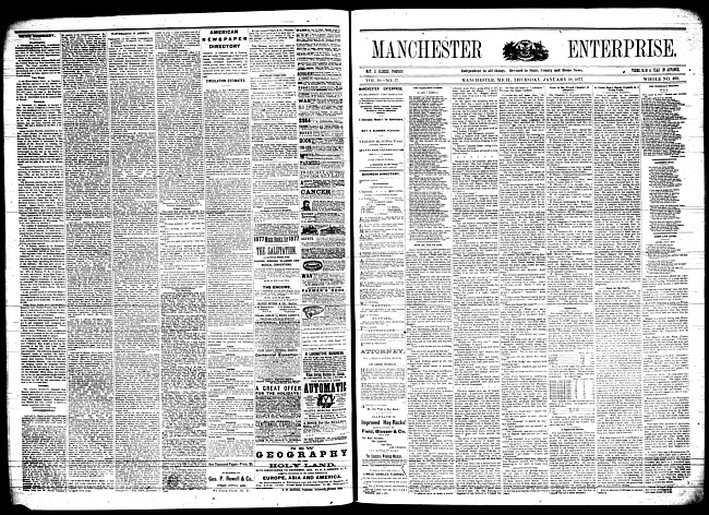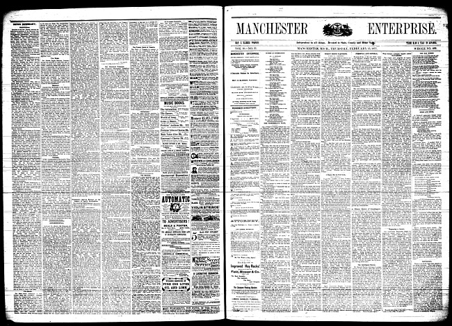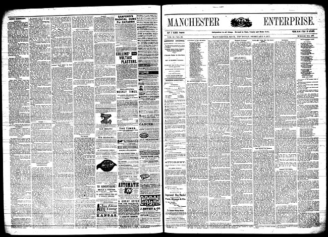 Text (1877)Part of Making of Modern MichiganManchester enterprise. Vol. 10 no. 19 (1877 February 1)