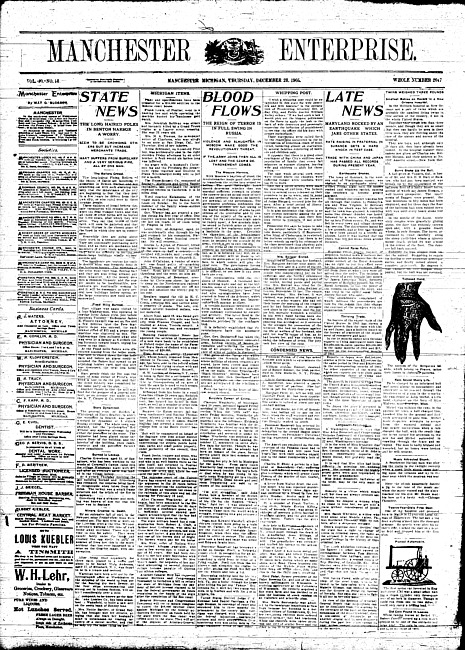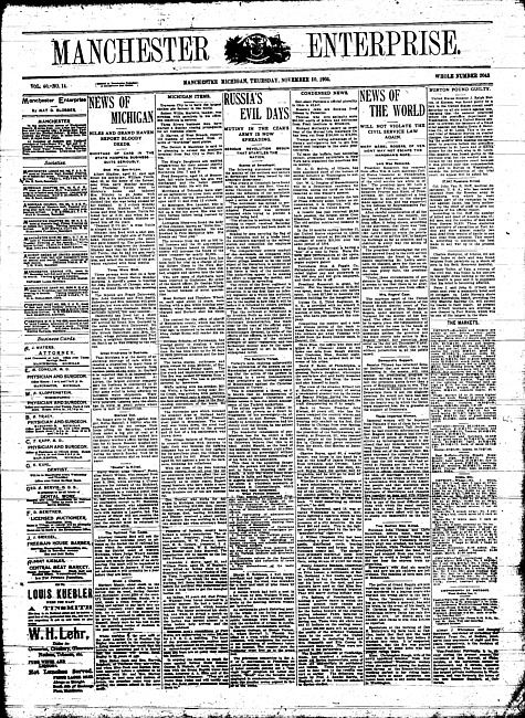 Text (1905)Part of Making of Modern MichiganManchester enterprise. Vol. 40 no. 21 (1906 January 18)