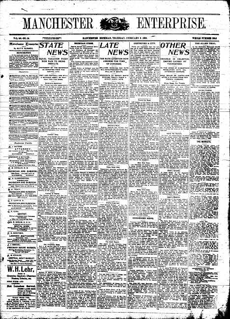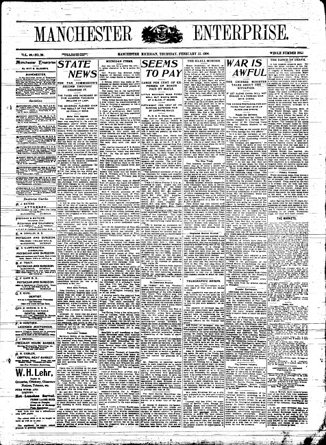 Text (1906)Part of Making of Modern MichiganManchester enterprise. Vol. 40 no. 24 (1906 February 8)