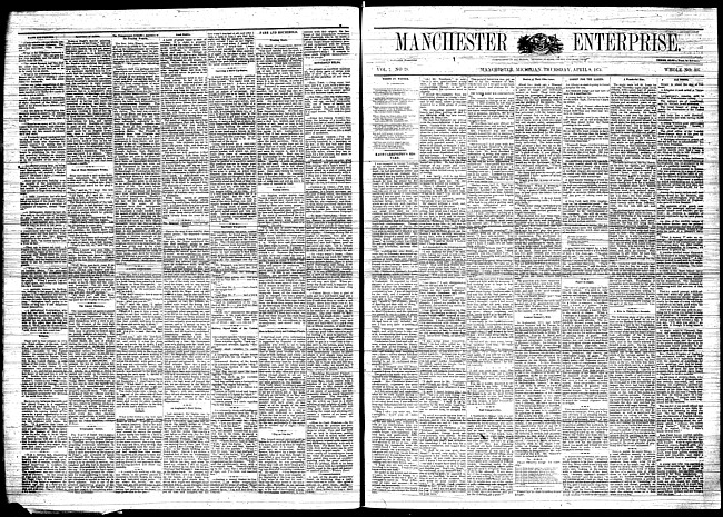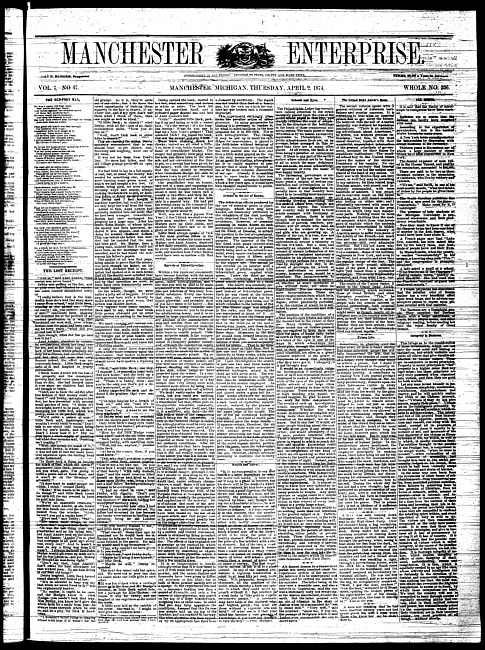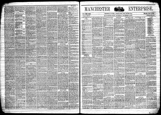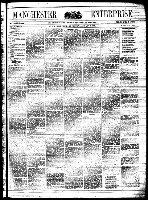 Text (1874)Part of Making of Modern MichiganManchester enterprise. Vol. 8 no. 16 (1875 January 14)