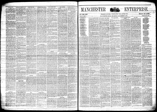 Text (1874)Part of Making of Modern MichiganManchester enterprise. Vol. 8 no. 8 (1874 November 19)