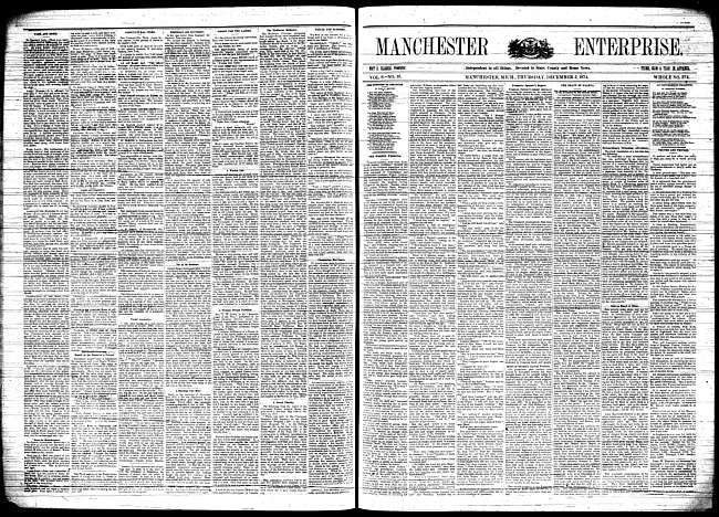 Text (1874)Part of Making of Modern MichiganManchester enterprise. Vol. 8 no. 10 (1874 December 3)