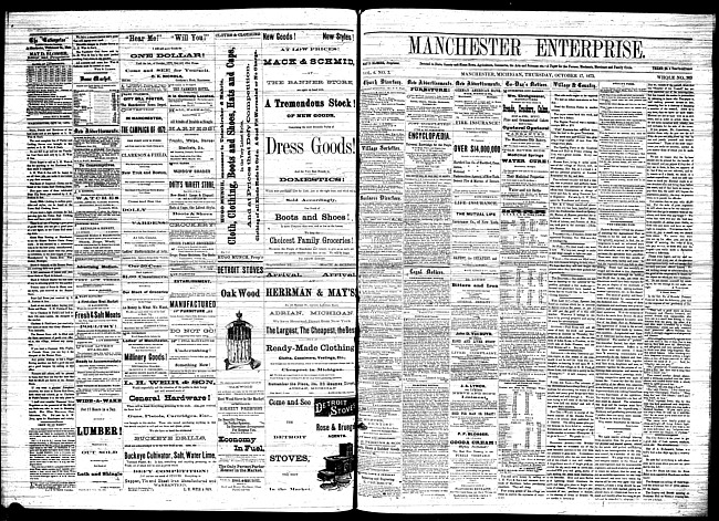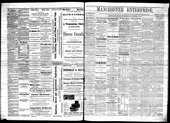 Text (1872)Part of Making of Modern MichiganManchester enterprise. Vol. 5 no. 52 (1872 September 26)