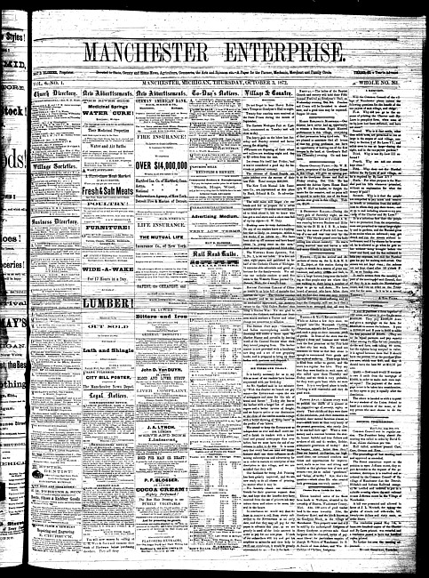 Text (1873)Part of Making of Modern MichiganManchester enterprise. Vol. 6 no. 18 (1872 January 30)