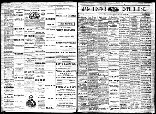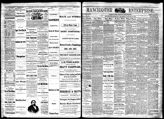 Text (1873)Part of Making of Modern MichiganManchester enterprise. Vol. 6 no. 17 (1873 January 23)