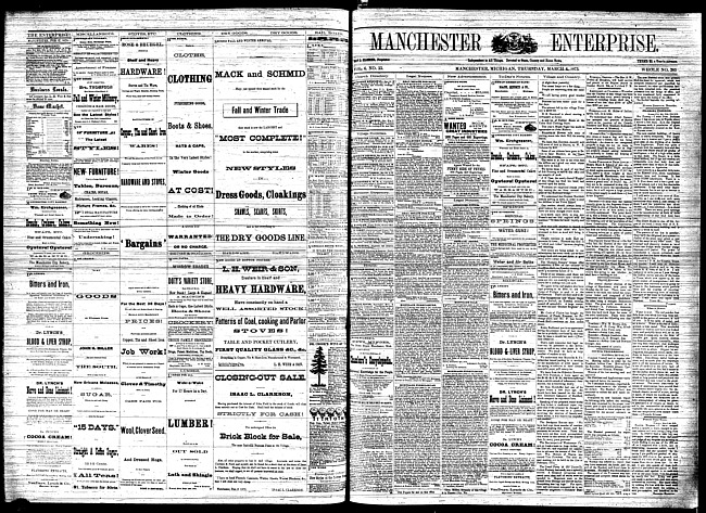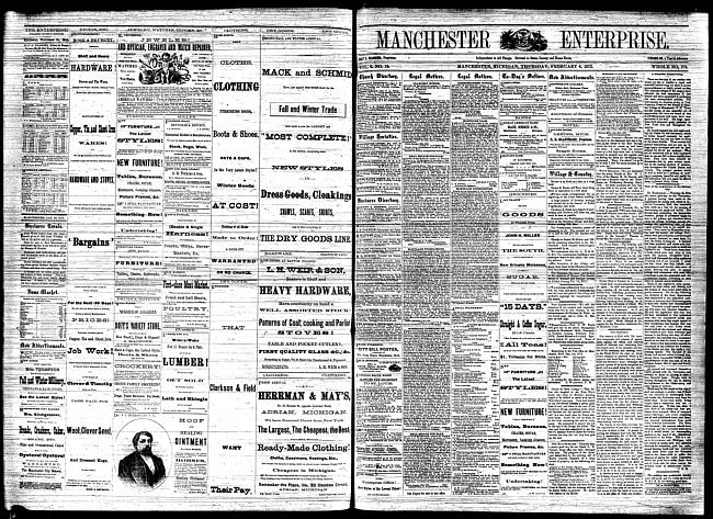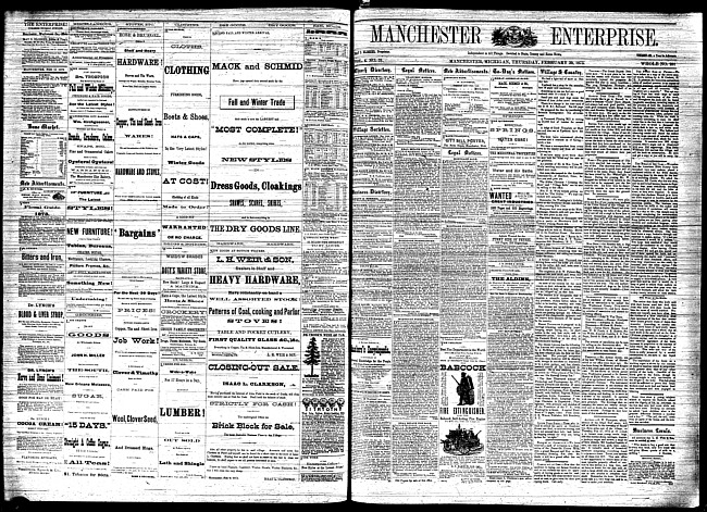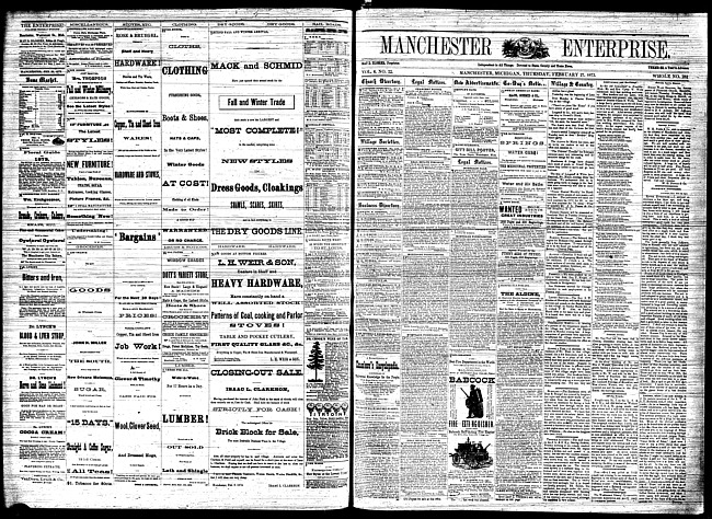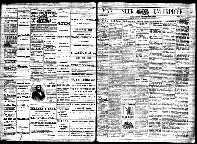 Text (1872)Part of Making of Modern MichiganManchester enterprise. Vol. 6 no. 20 (1873 February 13)