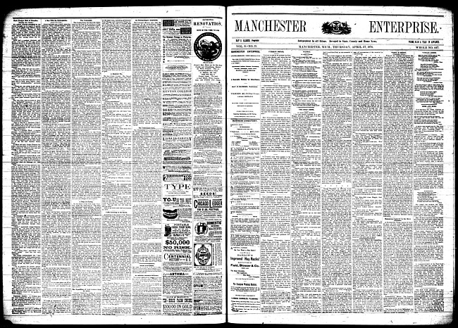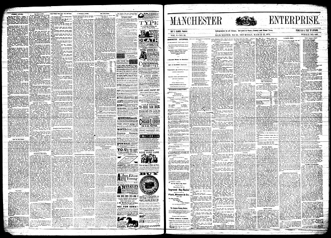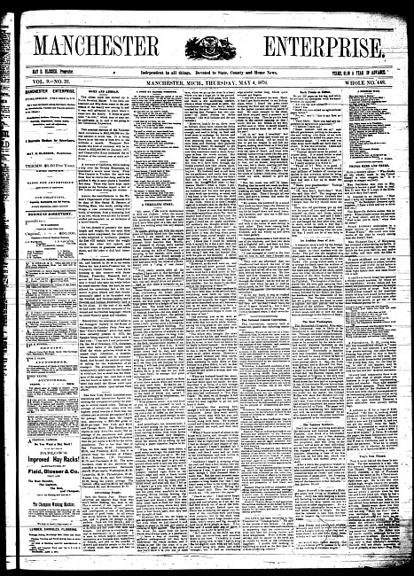 Text (1876)Part of Making of Modern MichiganManchester enterprise. Vol. 10 no. 9 (1876 November 23)