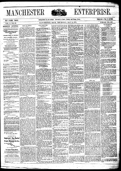 Text (1877)Part of Making of Modern MichiganManchester enterprise. Vol. 10 no. 10 (1876 November 30)